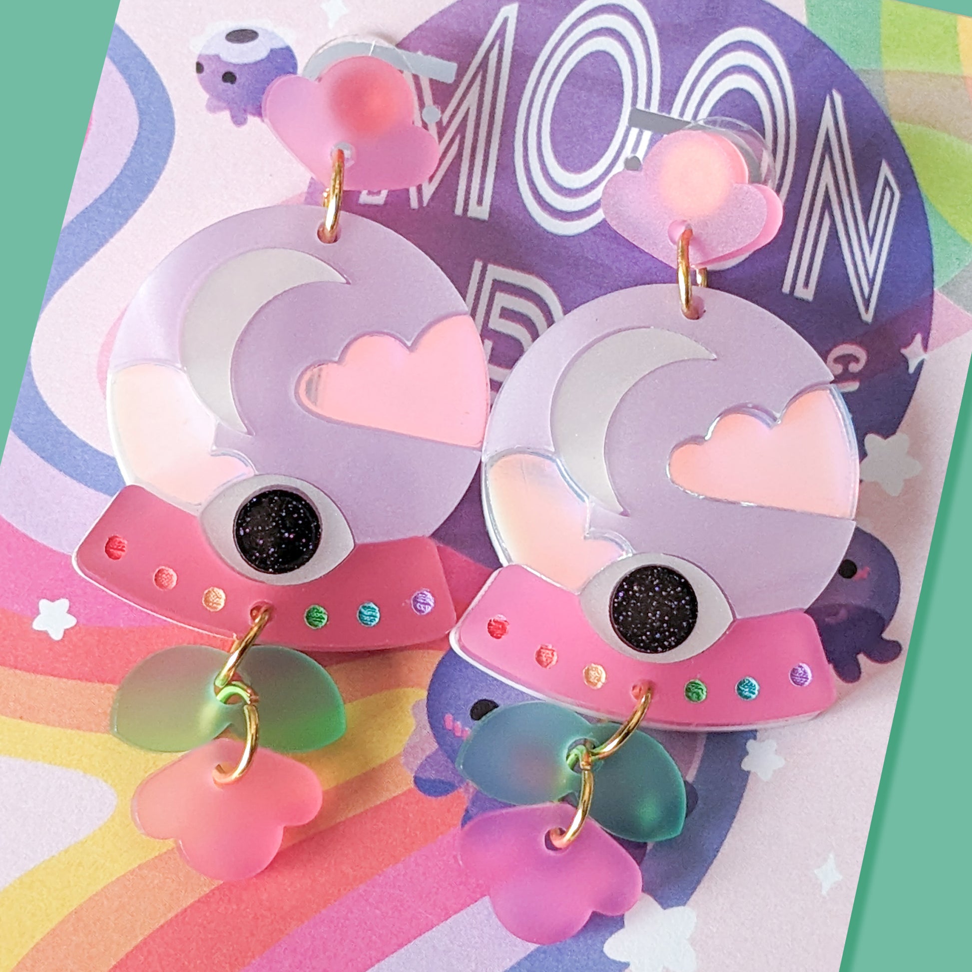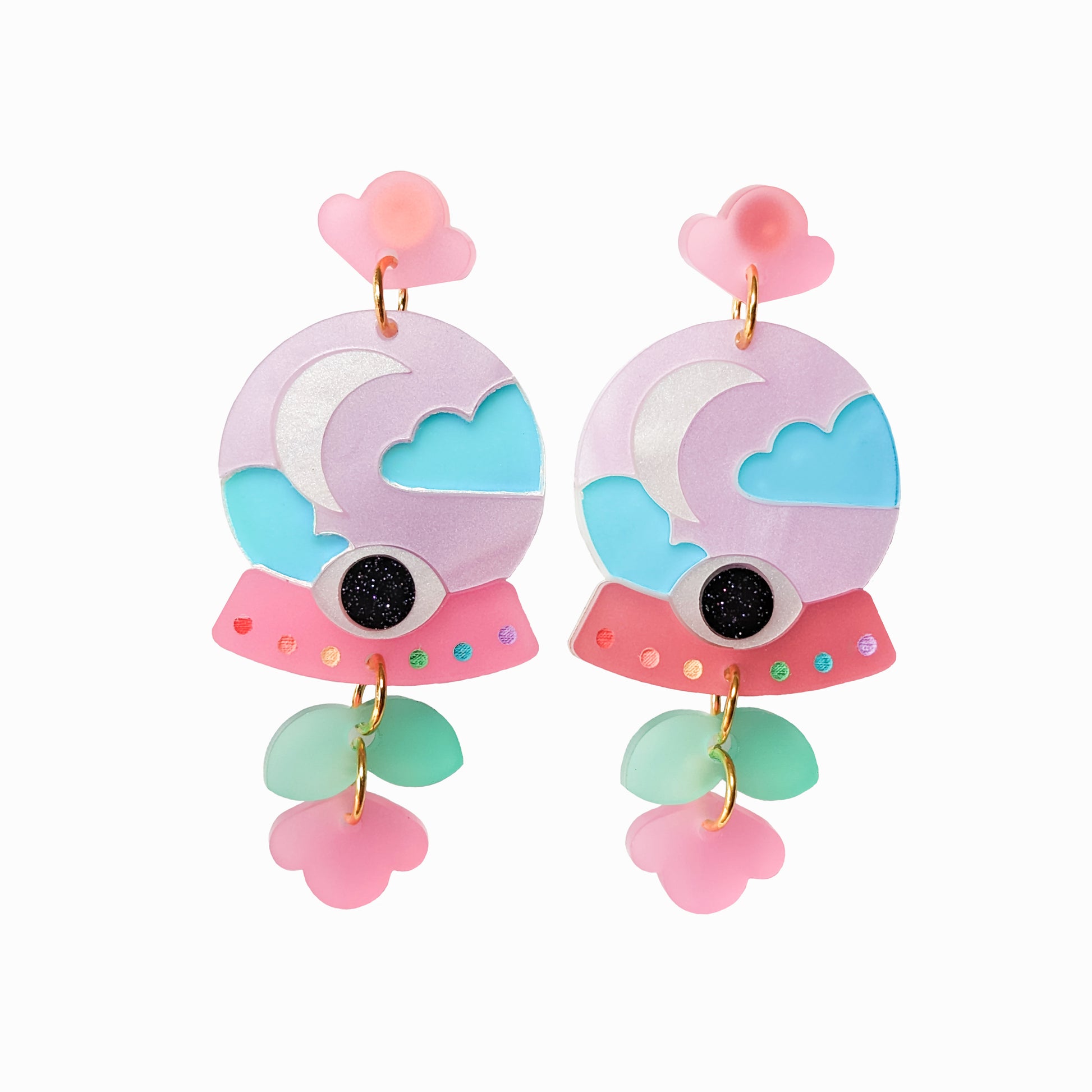 Embrace your mystical side while adding a touch of sparkle and color with Moonlit Magic earrings. These crystal ball acrylic earrings feature a mesmerizing night sky and pair perfectly with other handmade pieces from our oracle set. Perfect for fans of the occult and anyone who loves a pop of whimsy.