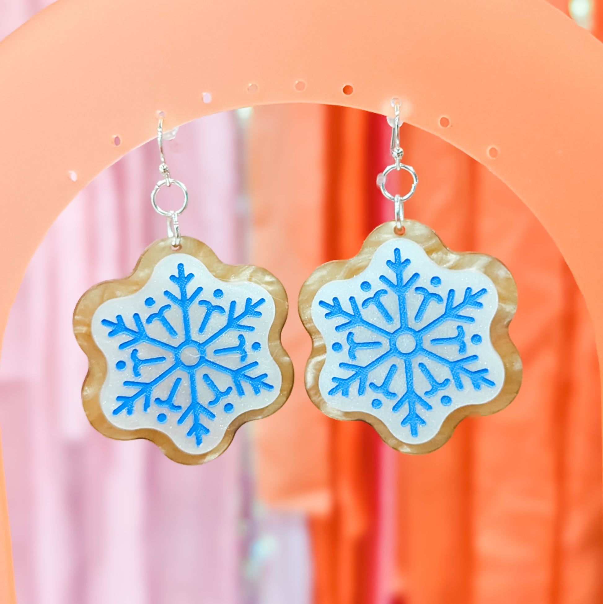 Satisfy your sweet tooth with these adorable snowflake icing sugar cookie earrings! Crafted from layered acrylic and hand-painted to perfection, they’re as delightful as they are light—so you can wear them all day, no sugar rush required!