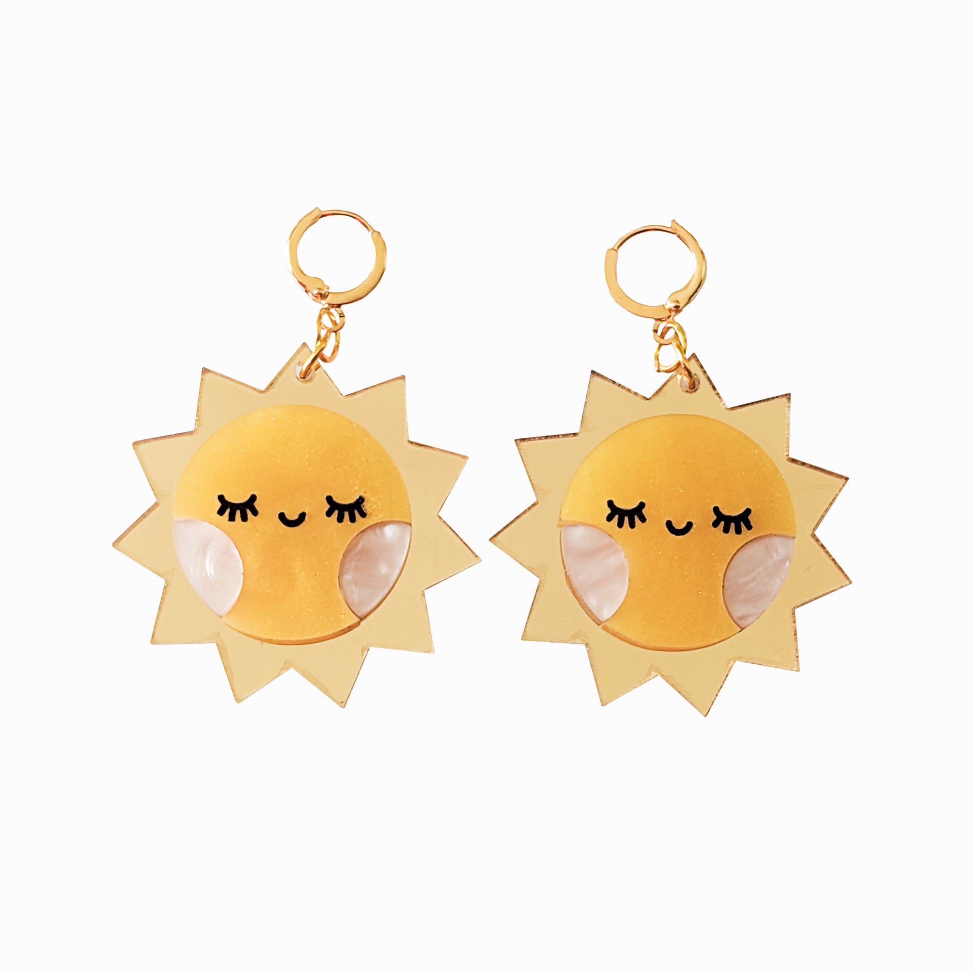 Make every day brighter with the sunshine earrings. Made with metallic and pearl acrylic, these earrings are sure to bring a smile and dispel any cloudy day. Lightweight and easy to wear all day, this set is definitely a fan favorite. Sure to spread positivity wherever you go, these earrings are lightweight and easy to wear all day. A fan favorite for good reason!